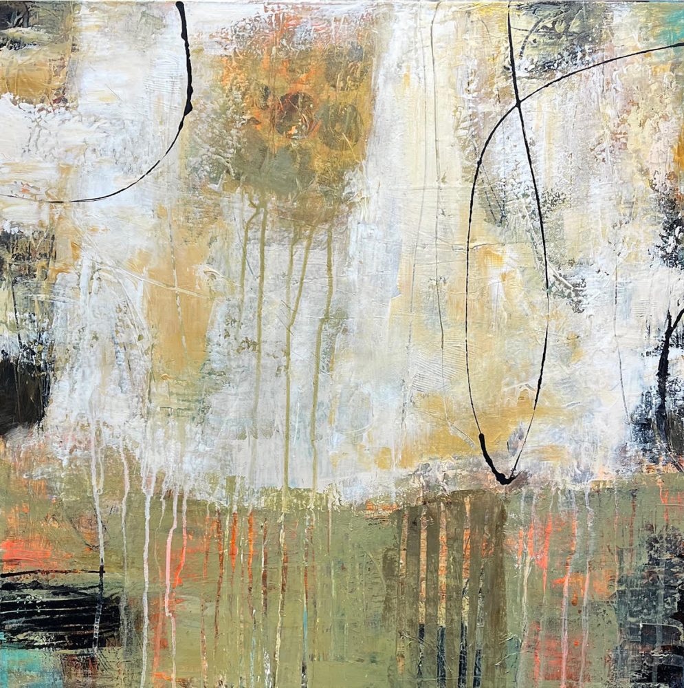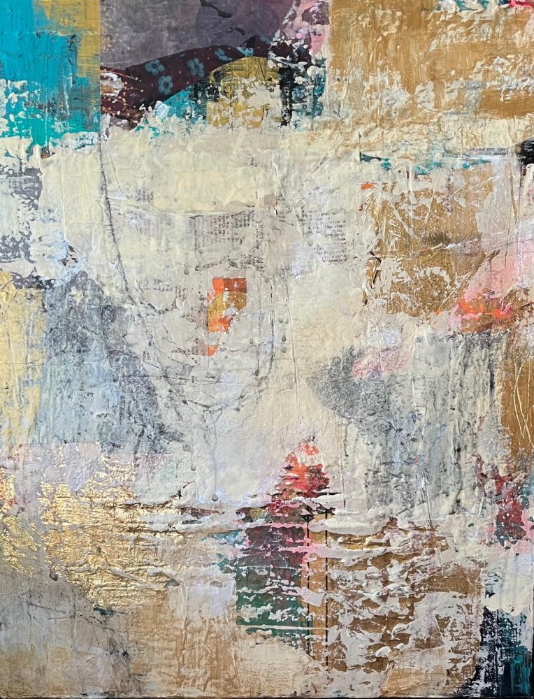 Corbett’s goal is always to create an interesting surface using mixed media materials like acrylic paints, plaster, gel mediums, graphite and powdered pigments. Abstract work allows the viewer to use their imagination while allowing for individual interpretation. She strives for an emotional response from the viewer.