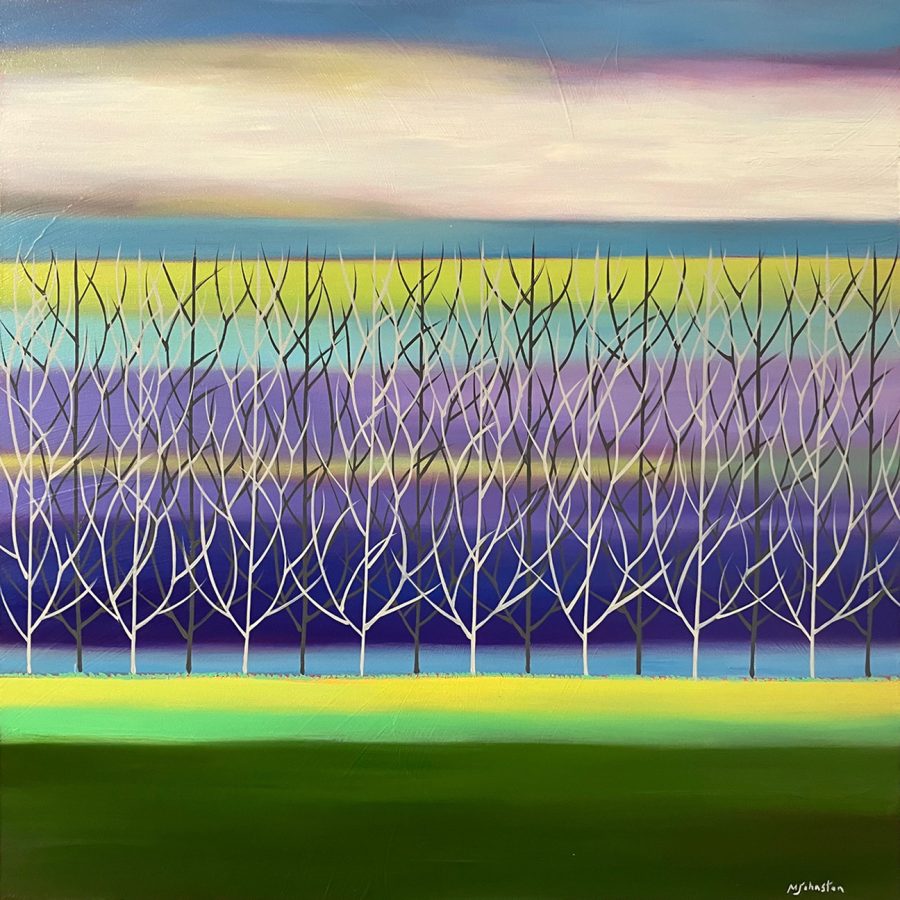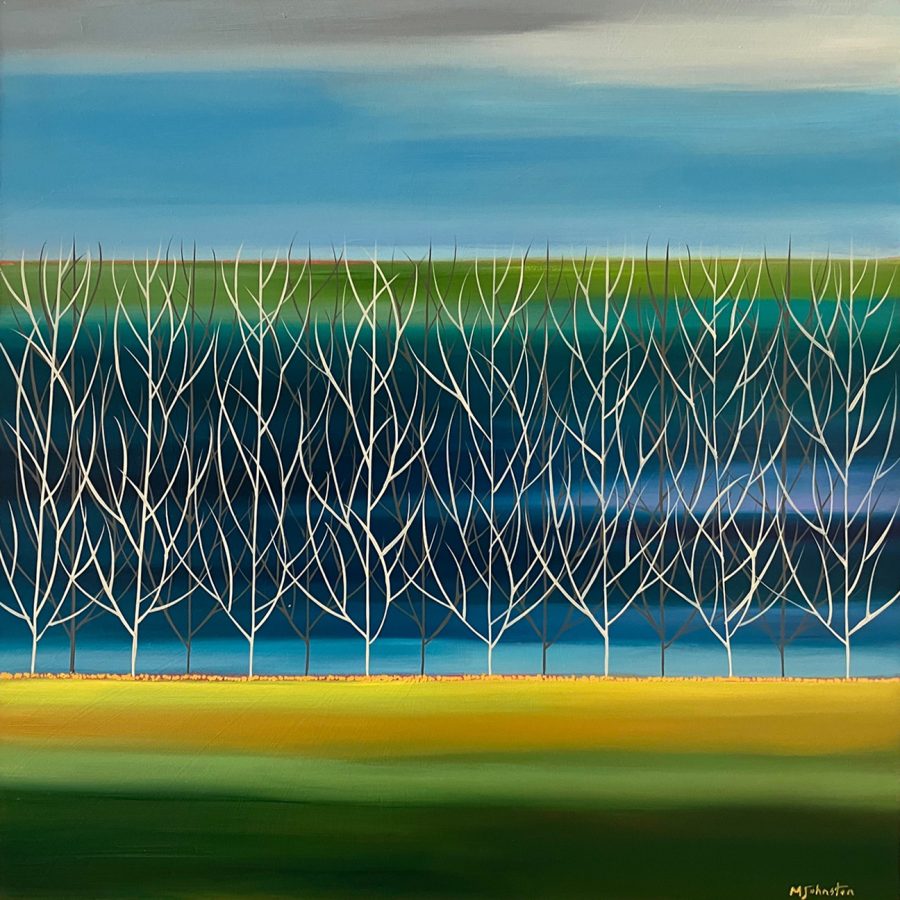 Mary Johnston is a contemporary landscape & abstract painter. The natural elements, large expansive sky, peaceful water, quiet green forests, the rocks and wind through the grass are the passions that dominate her work.